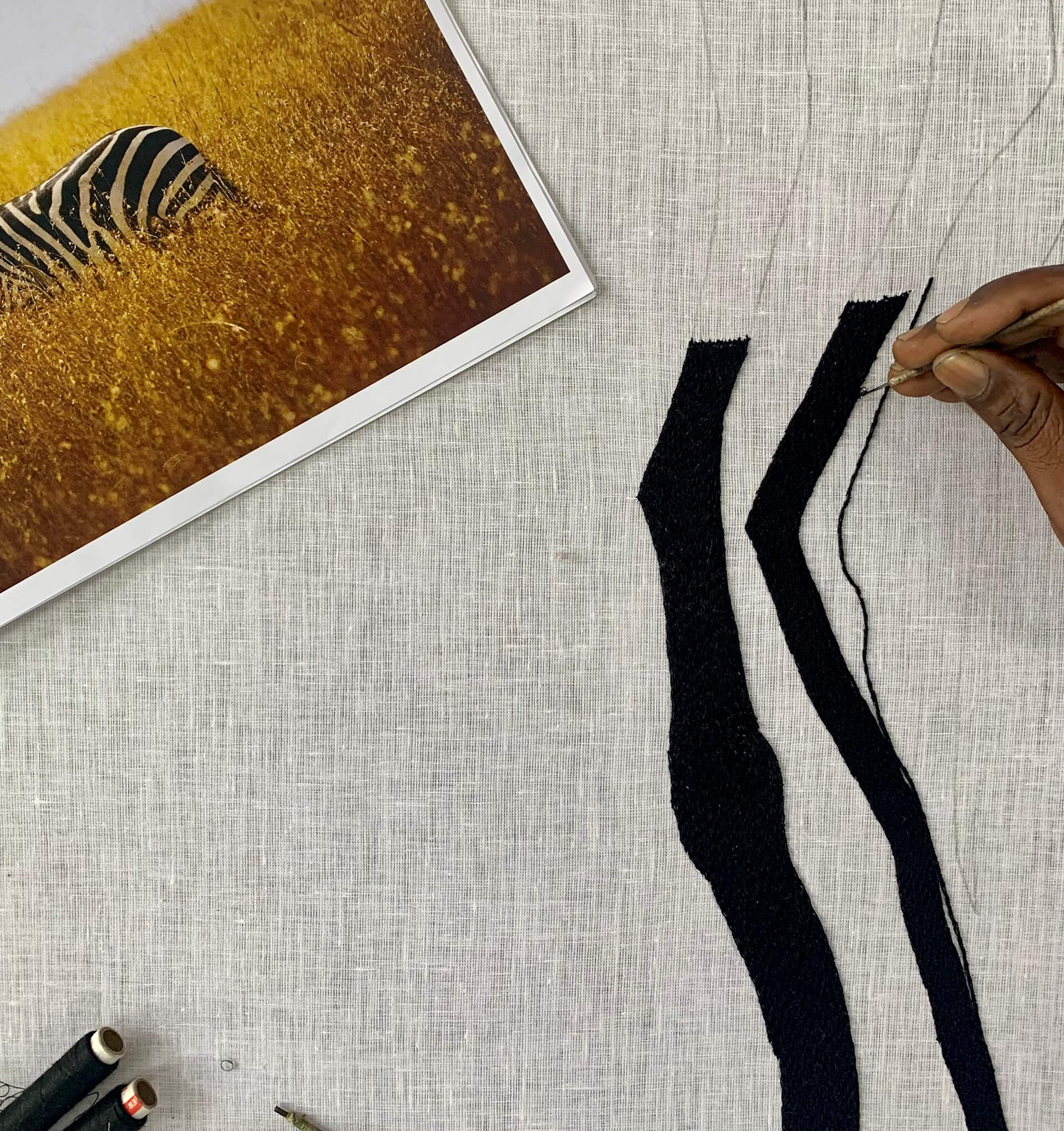 - Our inspiration for this garment is a photograph, in which a Zebra is standing in the Kenyan savannah grasslands. Only the animal's upper half is shown.